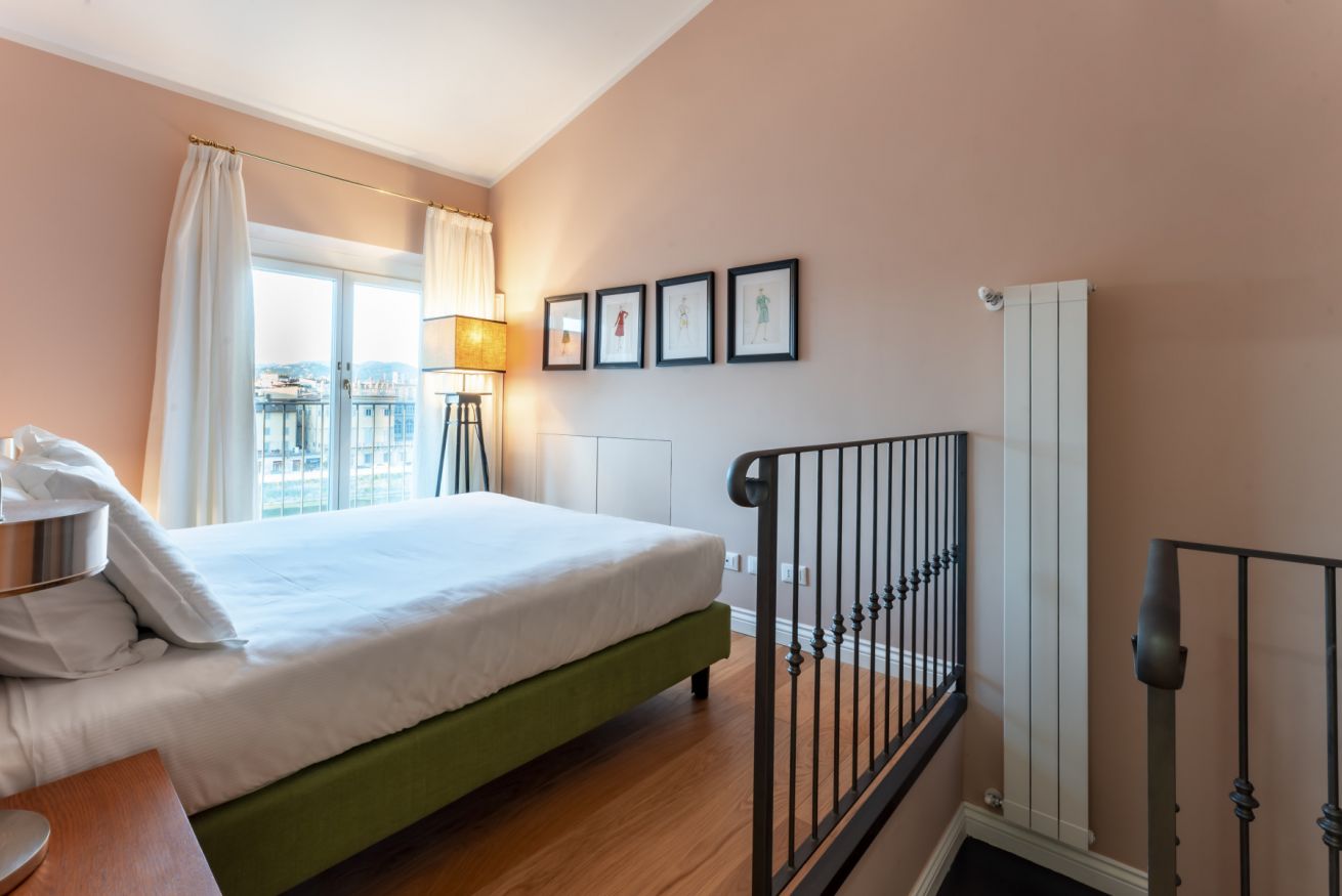 La zona notte è composta da 2 camere di cui una con il bagno en-suite completo di doccia. Entrambe sono dotate di un salottino collocato su un piano rialzato rispetto al letto e che conduce al balcone affacciato sul fiume. Sia dal salotto che dalle camere si accede al lungo balcone che assicura la stessa vista mozzafiato sia dalla zona giorno che dalla zona notte.