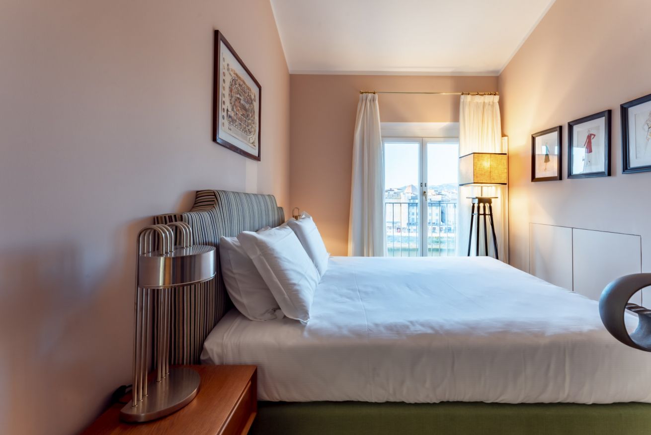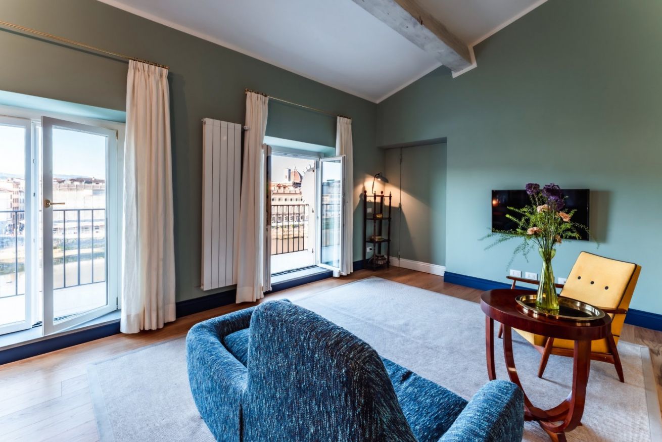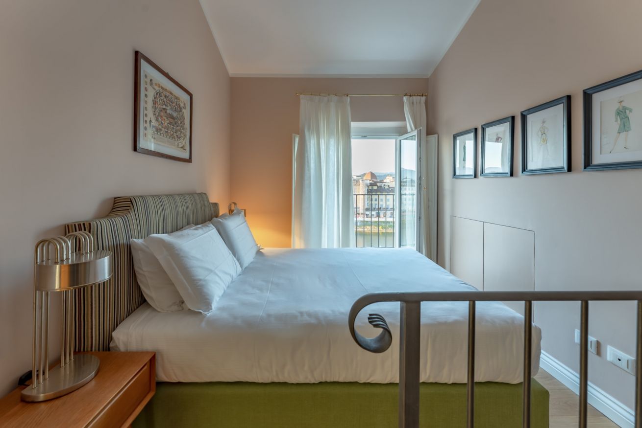 Situato in posizione straordinaria affacciato sulle rive dell' Arno, La Dolce Vita si trova al 4° piano con ascensore di una palazzina signorile. L'intero appartamento è stato rinnovato e ristrutturato con originali soluzioni architettoniche e raffinati arredi di design. La Dolce Vita è un appartamento con carattere che gioca a trasformare modernità e ricordo attraverso azzeccate scelte di materiali ed arredi. L'appartamento, seppur su uno stesso livello, è dotato di molti spazi rialzati con l'intento di creare ideali palcoscenici in grado di esaltare la vista offerta dagli affacci sul fiume.