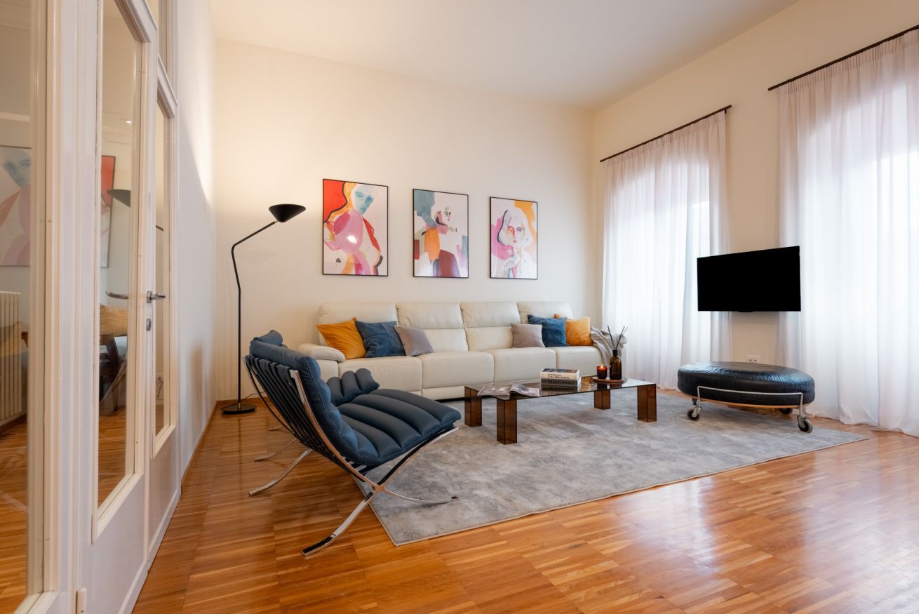Casine Design Apartment è inondato di luce naturale grazie alle grandi e numerose finestre che si affacciano sull'esterno ed arredato con gusto e meticolosa attenzione ai dettagli. I materiali utilizzati sono stati sono stati selezionati secondo gli standard più elevati come gli arredi selezionati con gusto e raffinatezza. L'approccio degli arredi incentrato sull'armonia tra natura e modernità è ben bilanciato e rende l'ambiente al contempo confortevole e sofisticato.