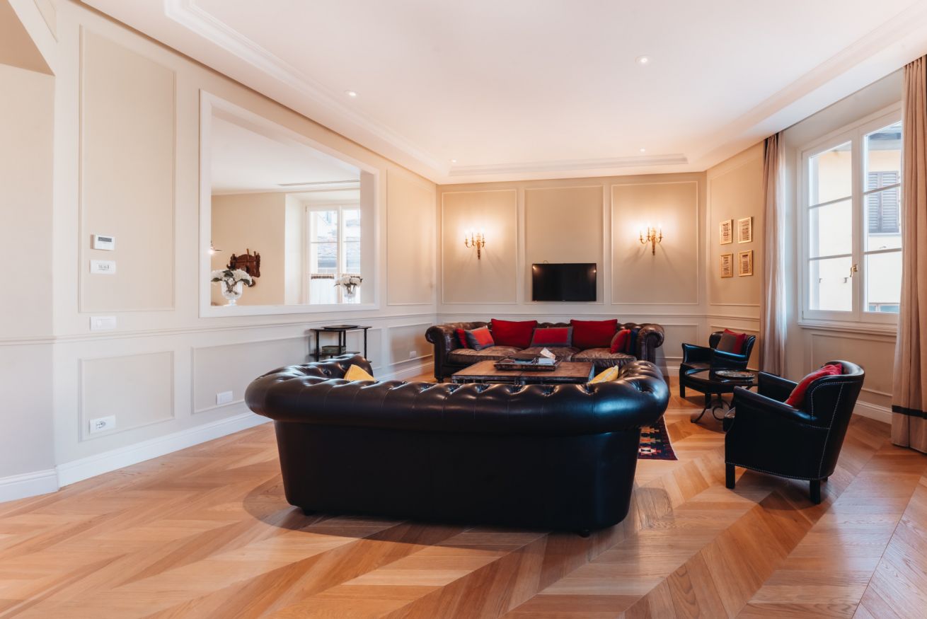 Magliabechi Prestige with view è distribuito su 2 livelli ed è una proprietà dal carattere ben definito. Stile, classe e signorilità sono sapientemente coniugati a spazi ampi e dotazioni di qualità. Gli arredi e le finiture bilanciano perfettamente moderno ed antico dando vita ad un ambiente classico ma leggero e luminoso. La sintesi perfetta di stile e comfort che tutti ricerchiamo nella definizione di "casa". Al piano terra, introdotti da un raffinato corridoio si trova il salone di rappresentanza che ospita splendidi divani e poltrone in pelle. Tutta la stanza è irradiata da due finestre gigantesche che si affacciano su una delle chiese più belle del mondo.
